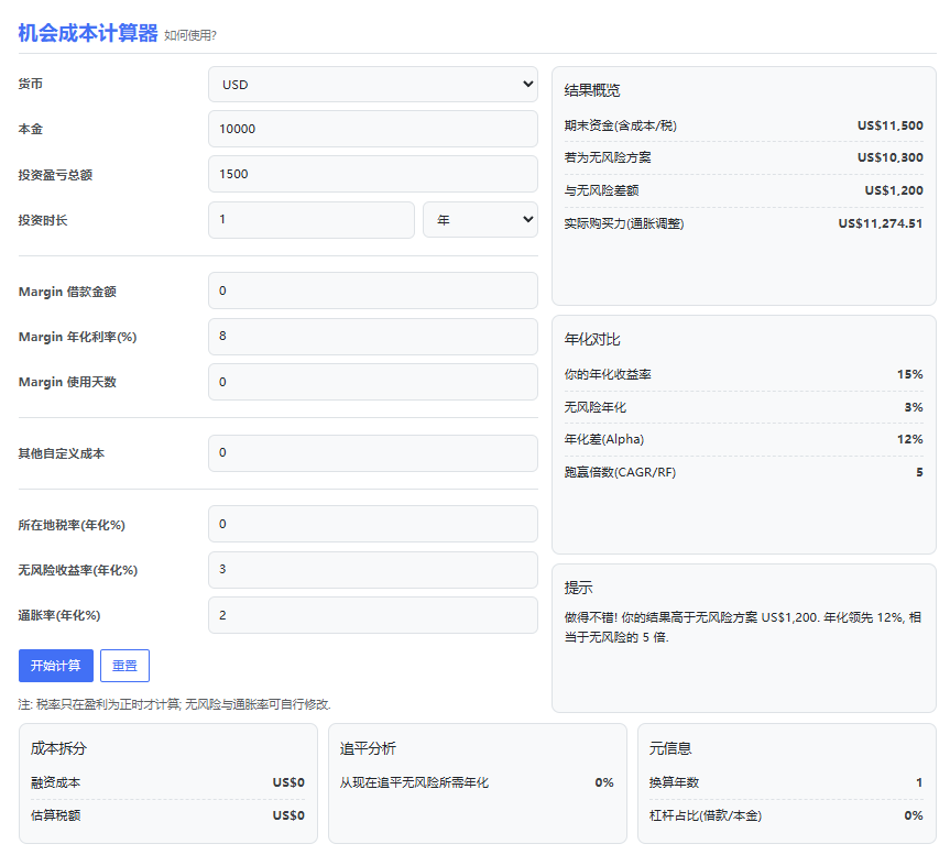 机会成本计算器使用指南