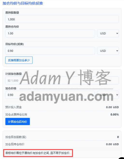这个计算器的作用主要是帮助投资者去快速理清状况: 卖掉/再买入一定数量的股票时, 整体持仓成本的变化, 以及如果想要让整体持仓达到自己想要的目标价时, 需要加仓…